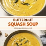 Creamy and scrumptious, this simple and nutritious butternut squash soup makes a easy however hearty lunch, appetizer or dinner.