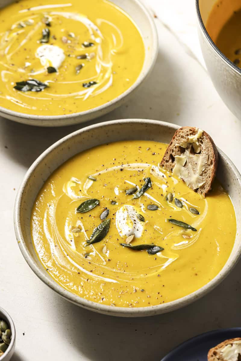 The soup can also be extremely versatile: you may make it dairy-free, spice it up with curry or chili, or add a swirl of yogurt or a handful of toasted seeds for additional texture and taste.