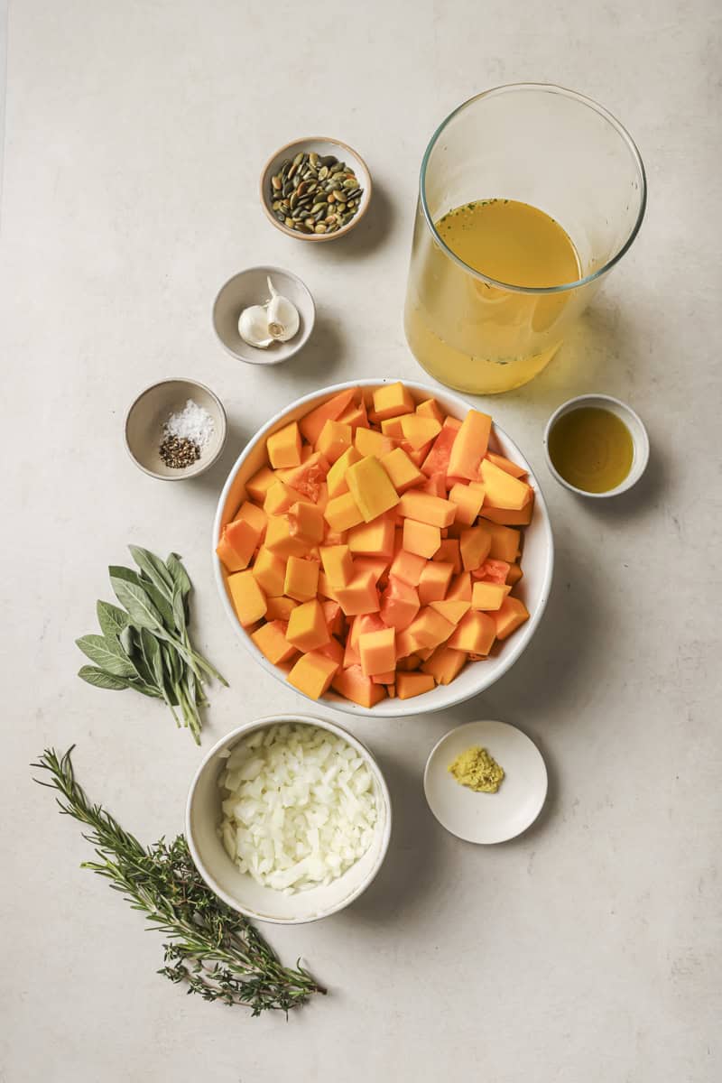 Collect these easy objects to make your butternut squash soup: