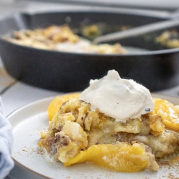 Tender and fluffy, the prep for this yummy skillet peach dump cake comes collectively in minutes. It is pure perfection with ice cream or whipped vanilla cream.